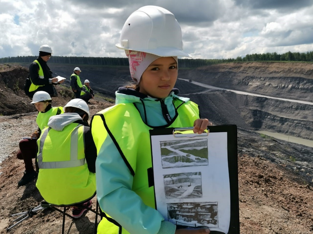 14 будущих художников посетили специально оборудованные смотровые площадки двух участков открытых горных работ: "Евтинский Перспективный" и "Караканский-Западный", где они сделали зарисовки, карандашные наброски процесса ведения горных работ с участием людей и горнодобывающей техники с натуры. В последствии эти наброски будут использованы ребятами для написания картин.